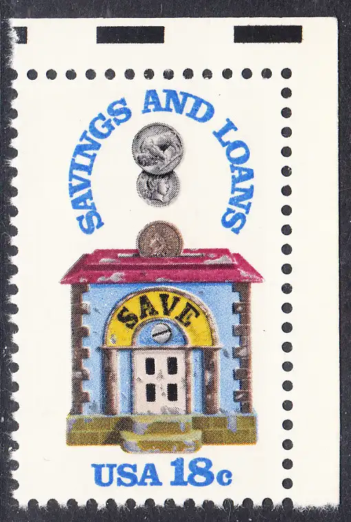 USA Michel 1469 / Scott 1911 postfrisch EINZELMARKE ECKRAND oben rechts - 150 Jahre Sparkassen; Alte Sparbüchse