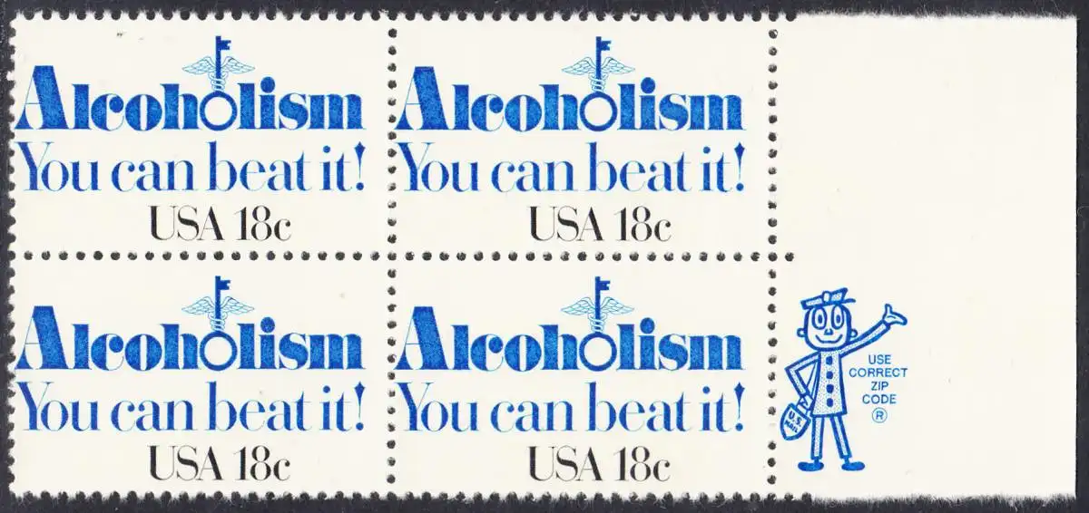 USA Michel 1499 / Scott 1927 postfrisch BLOCK RÄNDER rechts m/ ZIP-emblem - Kampf gegen den Alkoholismus