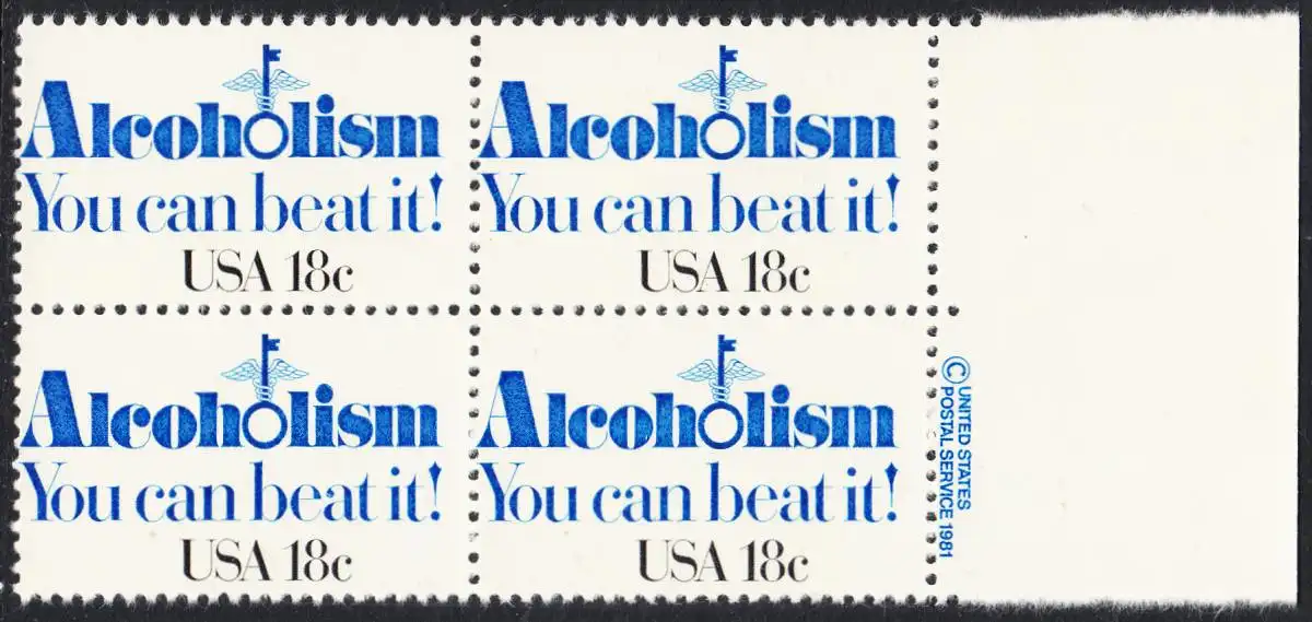 USA Michel 1499 / Scott 1927 postfrisch BLOCK RÄNDER rechts m/ copyright symbol - Kampf gegen den Alkoholismus