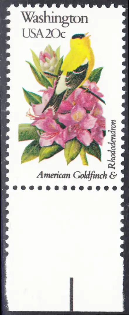 USA Michel 1578 / Scott 1999 postfrisch EINZELMARKE RAND unten (a2) - Vögel und Blumen der 50 Bundesstaaten: Washington: Trauerzeisig/Rhododendron