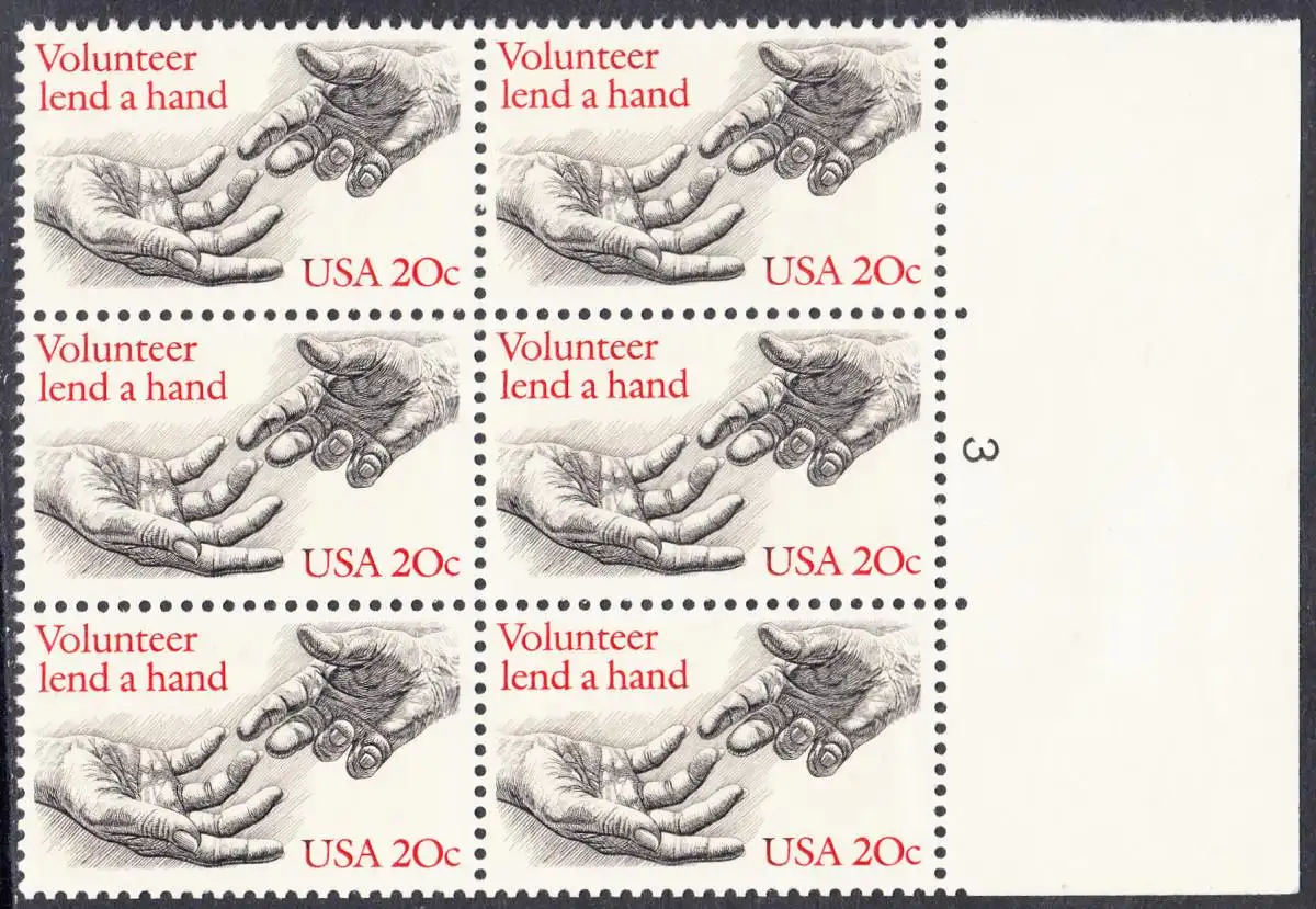 USA Michel 1627 / Scott 2039 postfrisch vert.BLOCK(6) RÄNDER rechts m/ Platten-# 3 (a2) - Freiwillige Hilfe