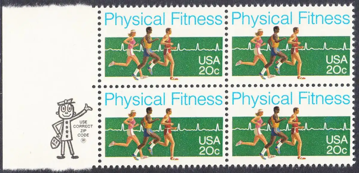 USA Michel 1629 / Scott 2043 postfrisch BLOCK RÄNDER links m/ ZIP-Emblem - Körperliche Fitness: Langstreckenlauf, Elektrokardiogramm