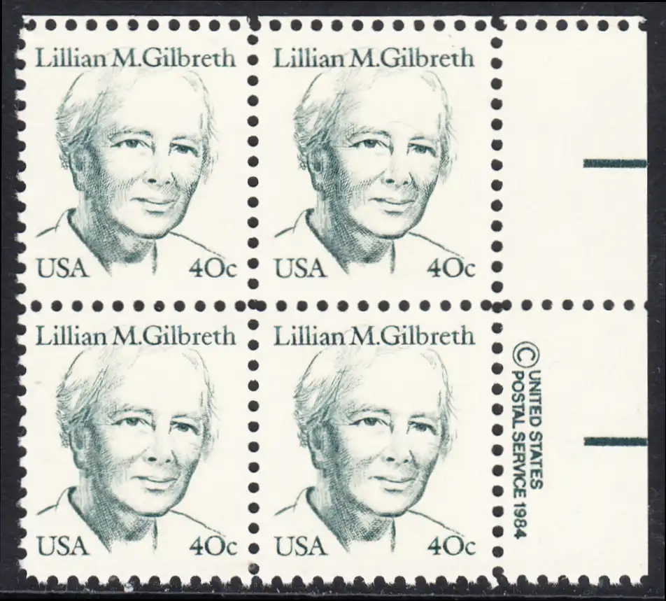USA Michel 1682 / Scott 1868 postfrisch BLOCK ECKRAND oben rechts m/ copyright symbol - Amerikanische Persönlichkeiten: Lilian M. Gilbreth (1878-1972), Ingenieurin