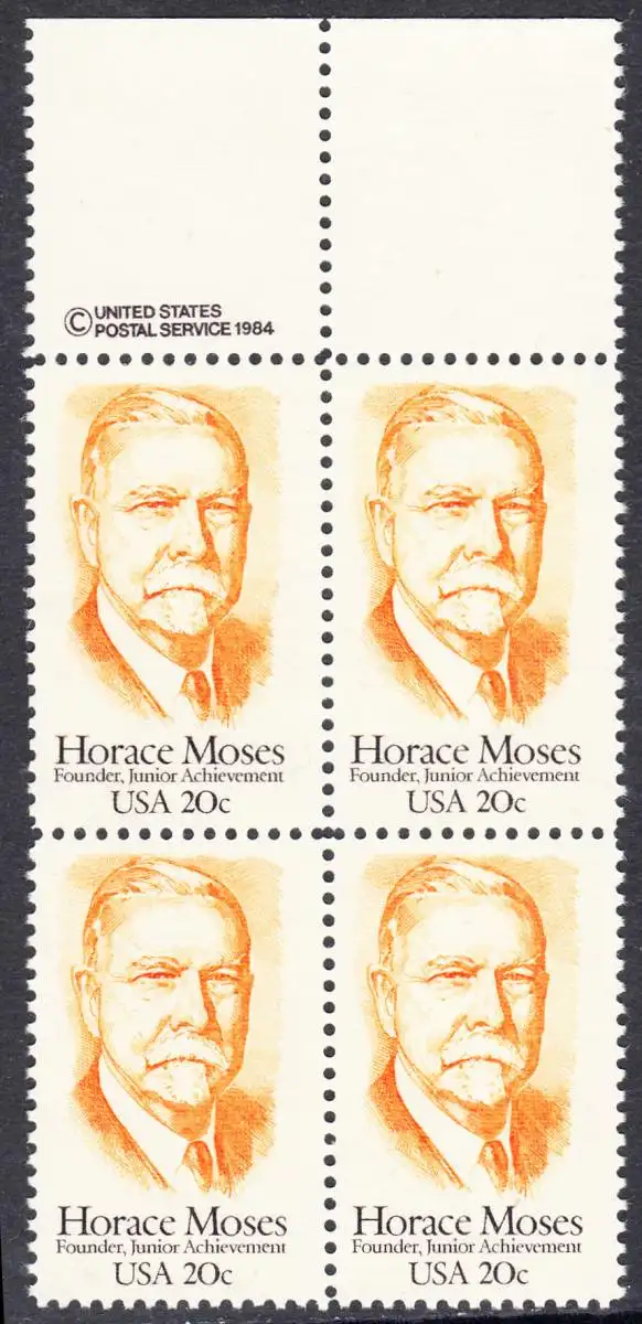 USA Michel 1704 / Scott 2095 postfrisch BLOCK RÄNDER oben w/ copyright symbol (a1) - Horace A. Moses, Industrieller und Philanthrop