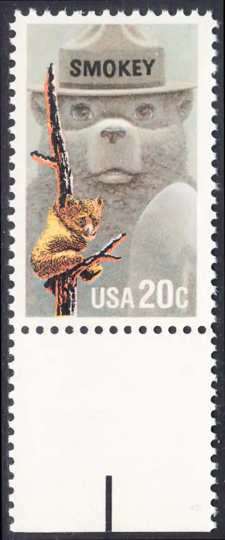 USA Michel 1705 / Scott 2096 postfrisch EINZELMARKE RAND unten (a2) - Waldbrandverhütung: Smokey Bear, Maskottchen der Kampagne zur Waldbrandverhütung