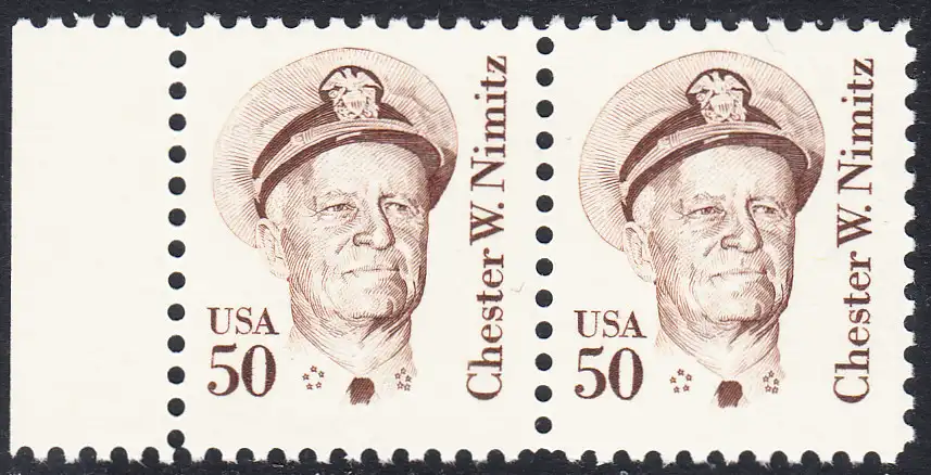 USA Michel 1728 / Scott 1869 postfrisch horiz.PAAR RAND links - Amerikanische Persönlichkeiten: Chester W. Nimitz (1885-1966), Admiral