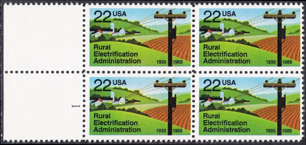 USA Michel 1752 / Scott 2144 postfrisch BLOCK RÄNDER links m/ Platten-# 1 (a1) - 50 Jahre Amt für die Elektrifizierung der ländlichen Gebiete