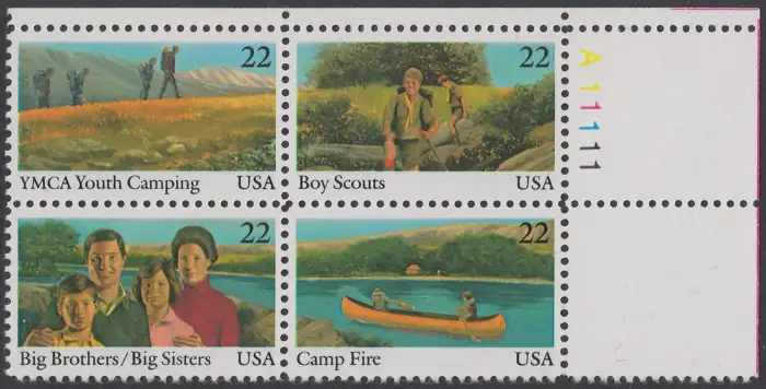 USA Michel 1772-1775 / Scott 2160-2163 postfrisch PLATEBLOCK ECKRAND oben rechts m/ Platten-# A11111 (b) - Internationales Jahr der Jugend: Jugendorganisationen
