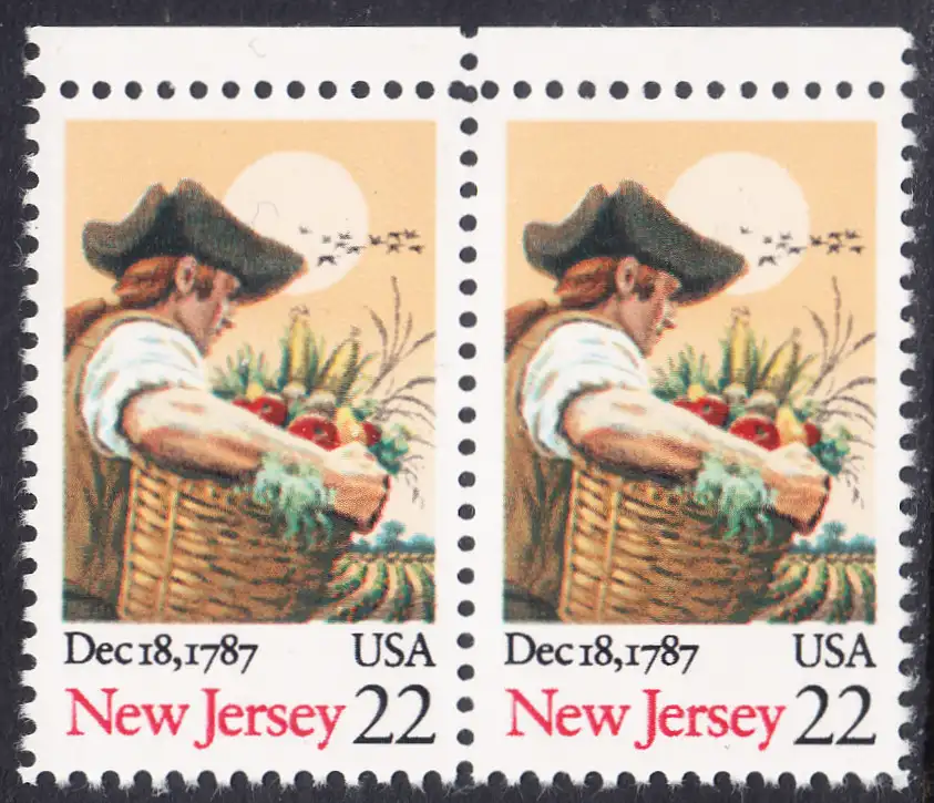USA Michel 1948 / Scott 2338 postfrisch horiz.PAAR RÄNDER oben - 200. Jahrestag der Ratifizierung der Verfassung durch den Staat New Jersey: Farmer mit Früchtekorb