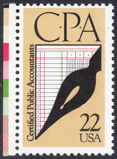 USA Michel 1950 / Scott 2361 postfrisch EINZELMARKE RAND links - 100 Jahre staatlich zugelassene Wirtschaftsprüfer: Schreibfeder, Journal