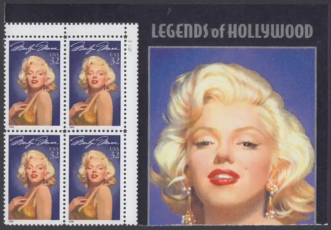 USA Michel 2570 / Scott 2967 postfrisch PLATEBLOCK ECKRAND oben rechts m/ Platten-# S112211 - Hollywood-Legenden: Marilyn Monroe (1926-1962), Schauspielerin