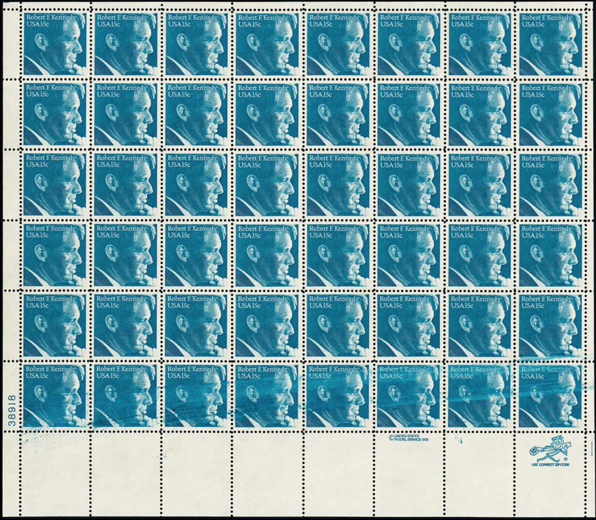 USA Robert Kennedy, Bogen mit markanter Farbverschmierung untere Reihe ** MNH