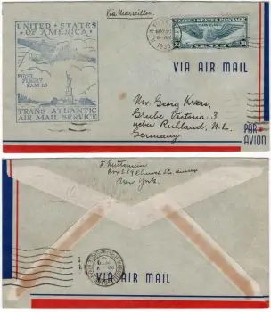 USA Trans Atlatic Air Mail Service First Flight FAM18 Flugbestätigungsstempel mit 30 Cent o New York 20.5.1939