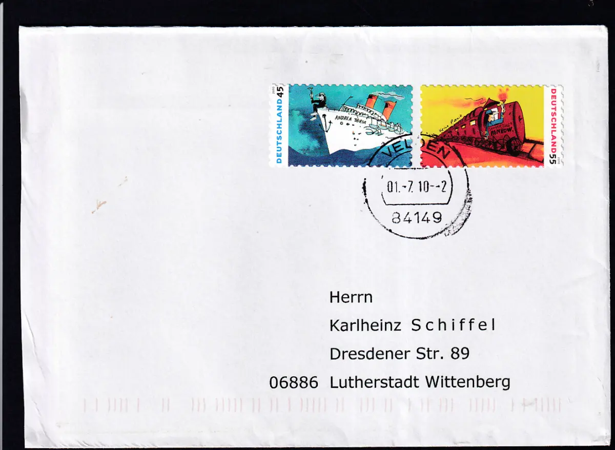 zwei sehr schöne Bahnpostbelege, einmal HUSUM-GARDING von 1916 - ohne Zugnummer aufgrund der Furcht vor feindlicher Spionage - und ERFURT-EISENACH von 1965. Vielen Dank, bin mit der Lieferung sehr zufrieden.