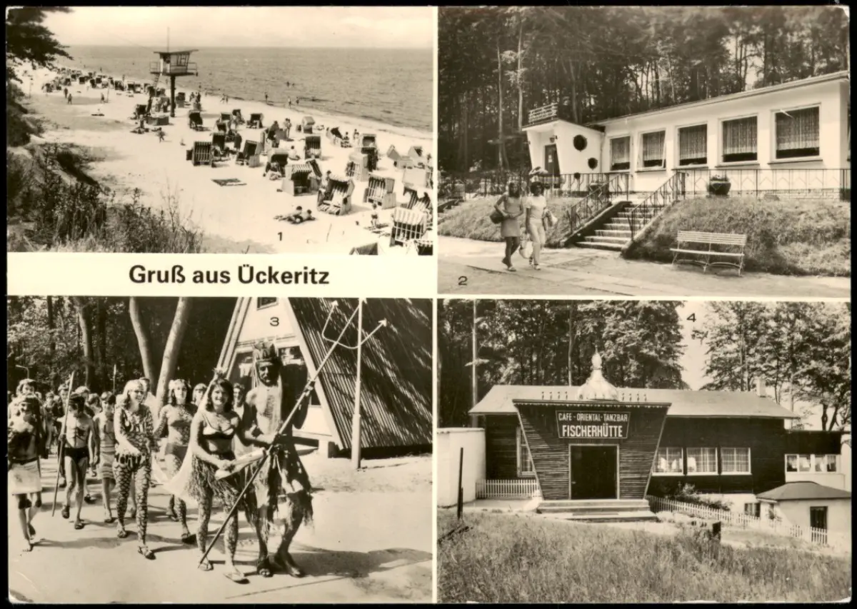 Ückeritz (Usedom) Strand, Strandklause, Neptunfest, Fischerhütte 1980