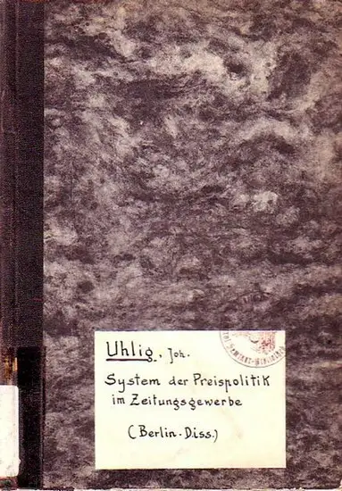 Uhlig, Johannes: System der Preispolitik im Zeitungsgewerbe. Mit Einleitung. Dissertation an der Handels - Hochschule Berlin, 1932.