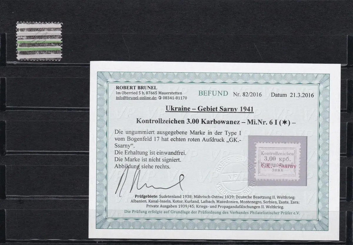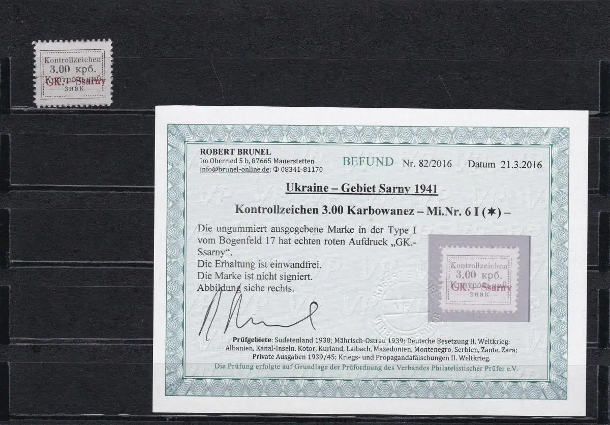 Ukraine 1941, Gebiet Sarny: MiNr. 6 I, *