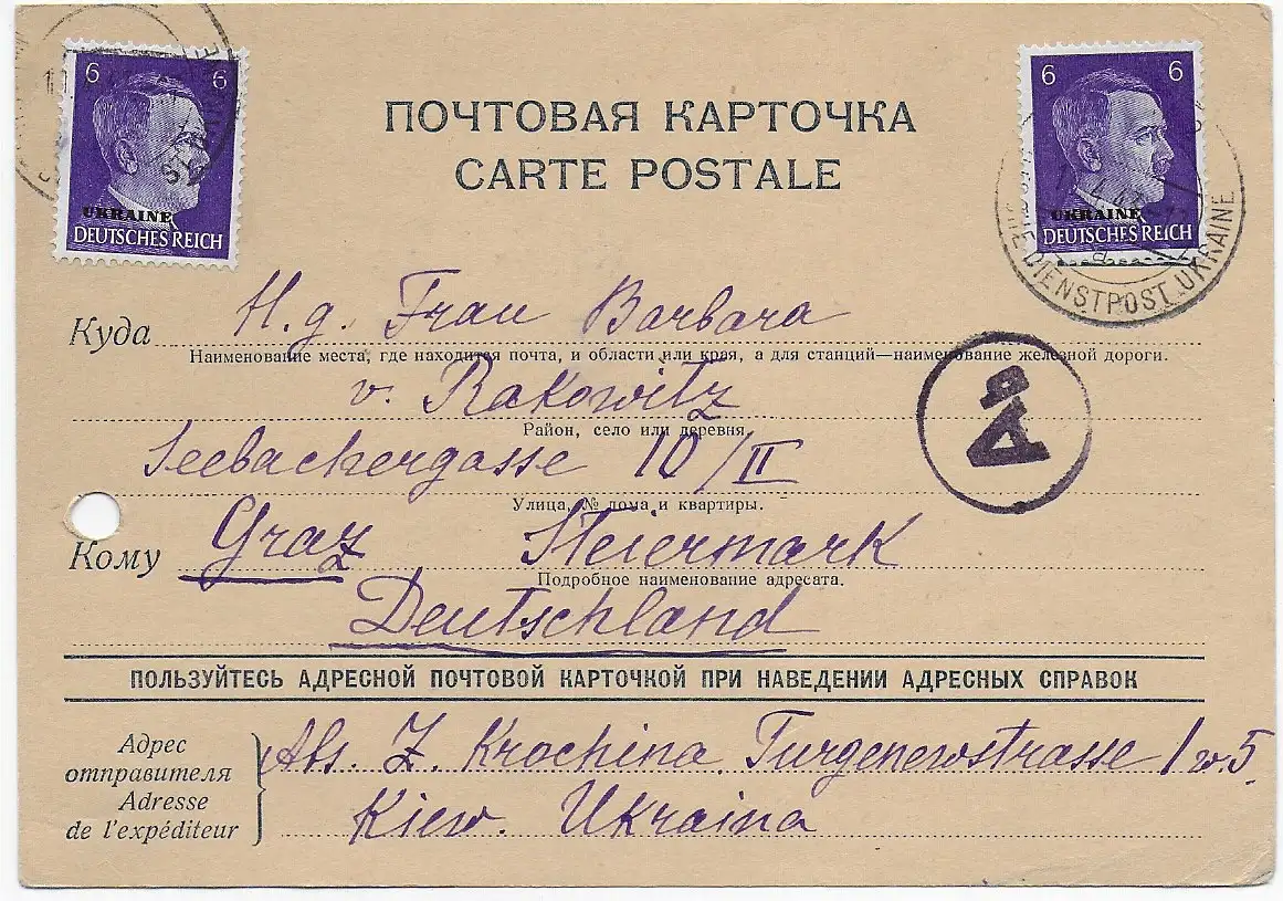 Ukraine: Postkarte 1943 Kiew nach Steiermark, OKW-Zensur