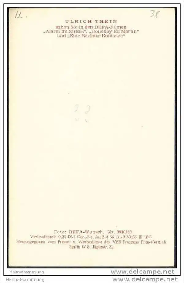 Ulrich Thein - AK ohne rückseitige Einteilung - Verlag VEB Progress Film-Vertrieb Berlin 1956 (G21856) *