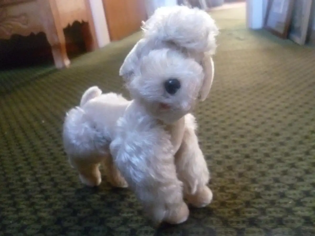 Dieser charmante Pudel misst schöne 20 cm von der Nase bis zum Schwanz und ist 23 cm groß, die perfekte Ergänzung Ihrer Vintage-Sammlung oder ein exquisites Geschenk für einen Mitspielzeug-Enthusiasten.