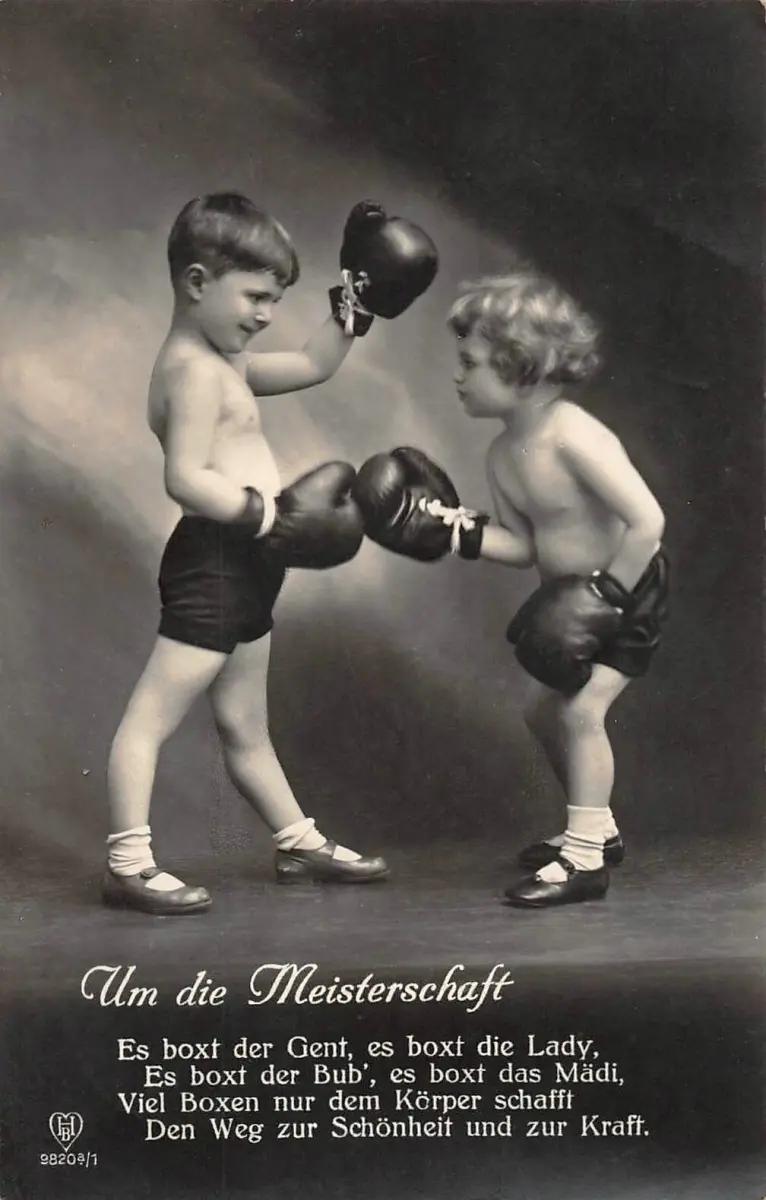 Um die Meisterschaft Boxen Kampf Kinder mit Boxhandschuhe HB Postkarte 1928