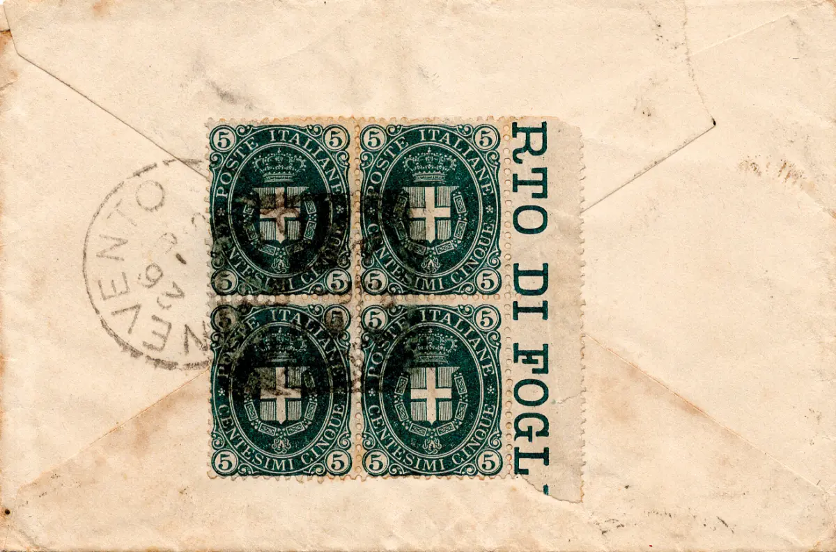BUSTA - Umberto I. Cent. 5 Wappen Nr. 44 Viertel b. von f. auf der Rückseite des Beutels von Rom nach Benevent am 26.6.1891 - - Ungewöhnlich - Kat. euro 550 Cod.29/182