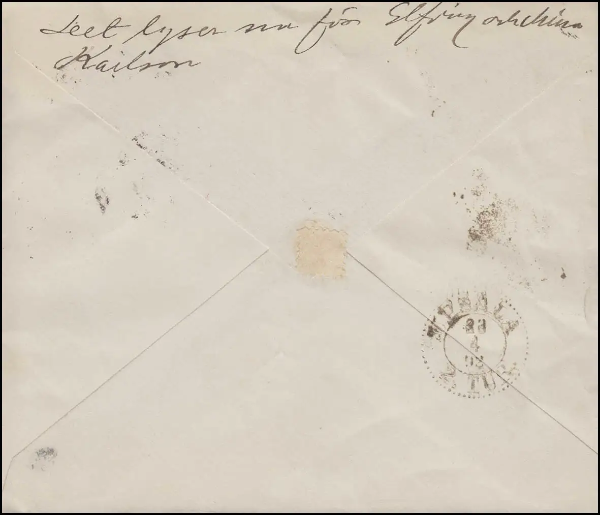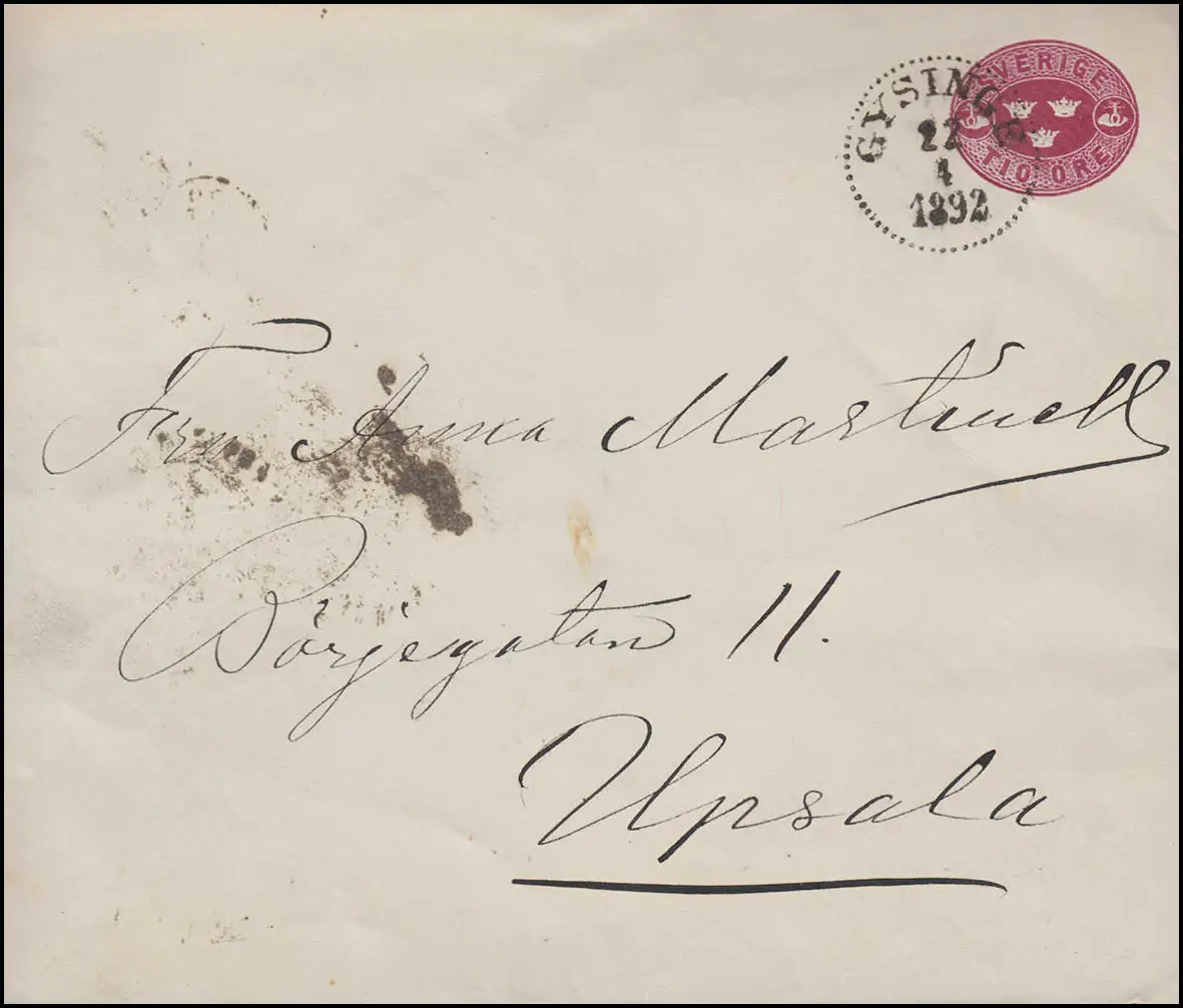 Umschlag 9X Drei Kronen 10 Öre, GYSINGE 22.4.1892 nach UPSALA 23.4.92