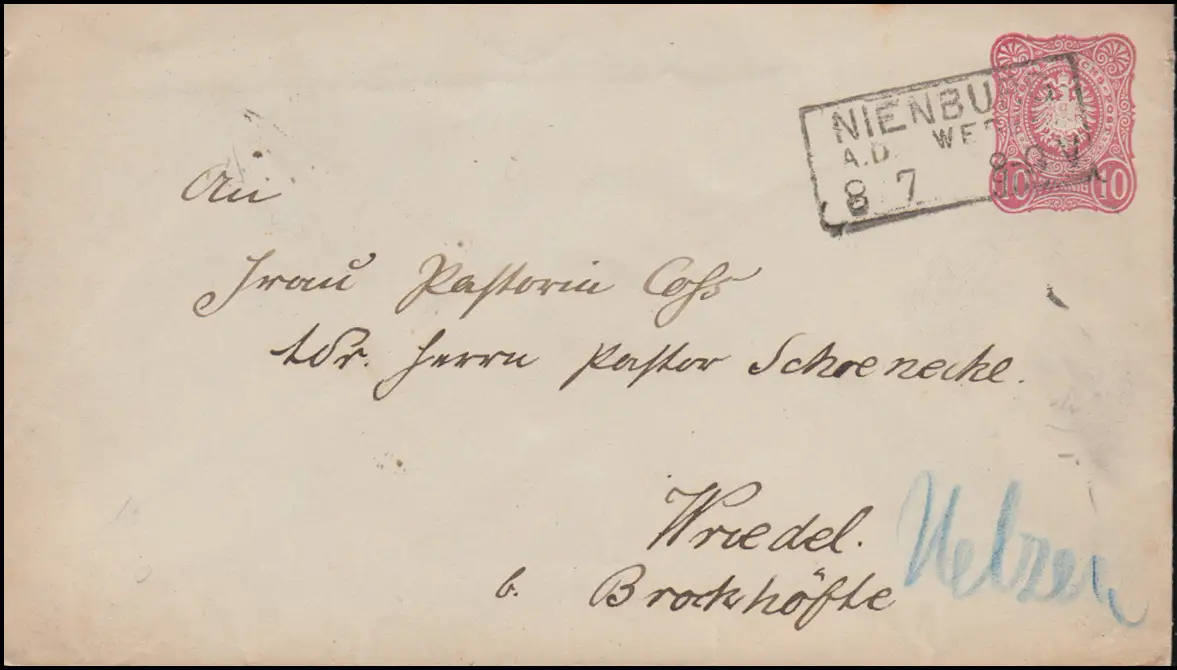 Umschlag U 12A Adler NIENBURG 8.7. nach Wriedel bei Brockhöfe über EBSTORF 9.7.