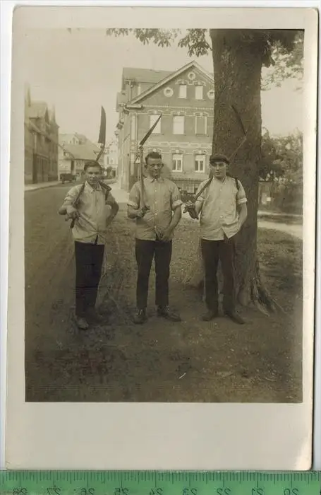 Unbekannter Ort, drei Männer gehen zur Heuernte, Verlag: -----, POSTKARTE, Erhaltung: I-II, Karte wird in Klarsichthülle
