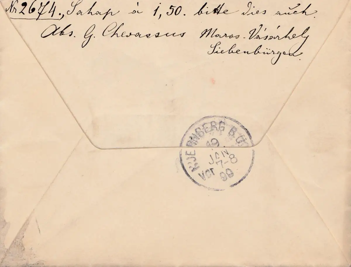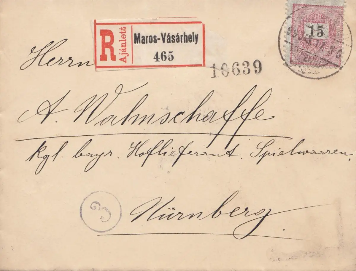 Ungarn: 1899: Einschreiben Maros-Vasarhey nach Nürnberg