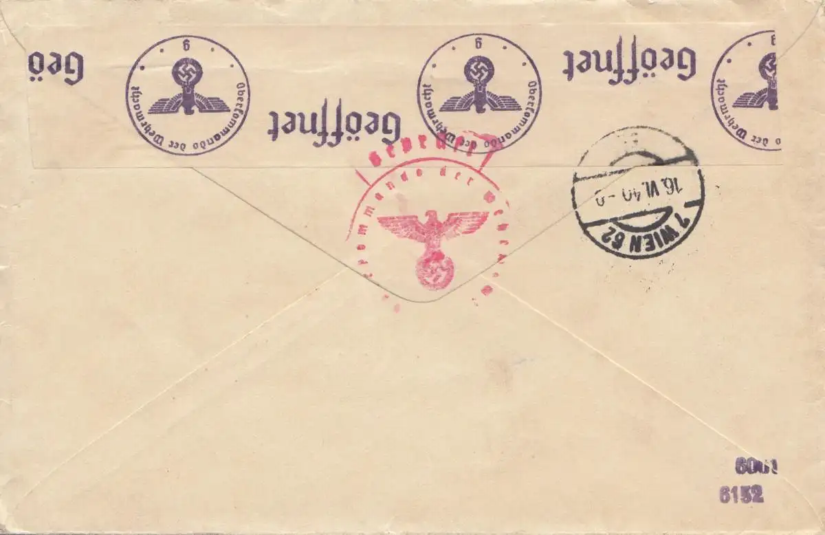 Ungarn: 1940: Einschreiben Budapest nach Wien, Zensur