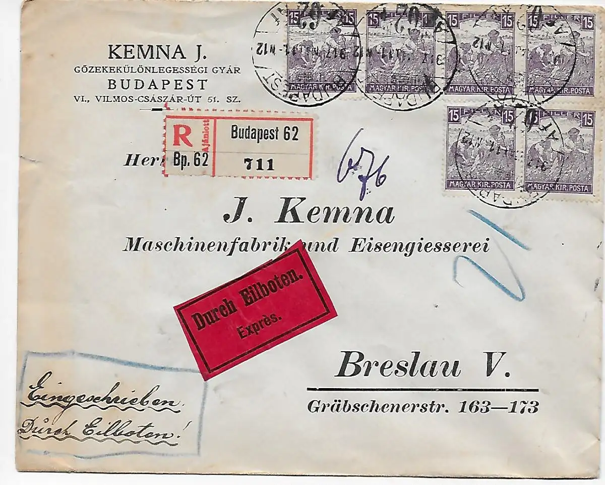 Ungarn: Einschreiben Eilboten Budapest 1917 nach Breslau, MeF