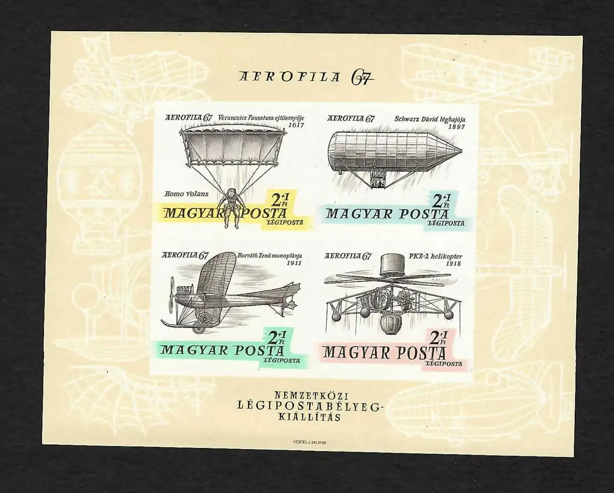 Ungarn: Internationale Luftpostmarken Ausstellung AEROFILA '67, Block #57B
