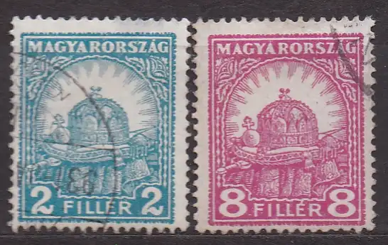 Ungarn, Mi-Nr. 442 B + 446 B gest., Stephanskrone