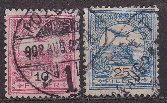 Ungarn, Mi-Nr. 60 A + 62 A gest., Turul überfliegt Stephanskrone