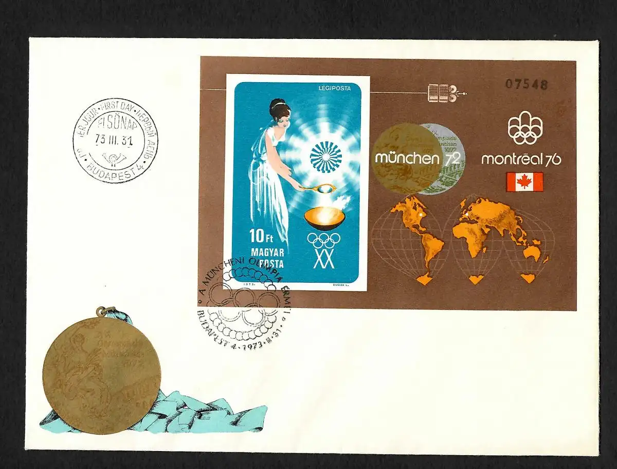 Ungarn: Olympiade München 1972 + Montreal 1976, Block #96B, FDC
