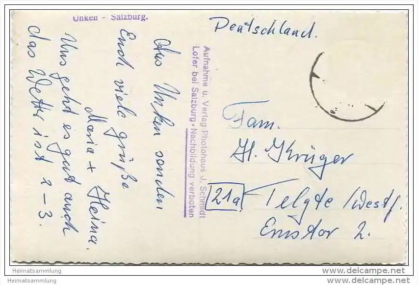 Unken - Foto-AK - Verlag Photohaus J. Schmidt Lofer - Marke entfernt (E9161) gel.