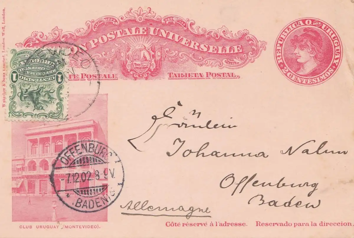 Uruguay 1902: post card Montevideo to Offenburg