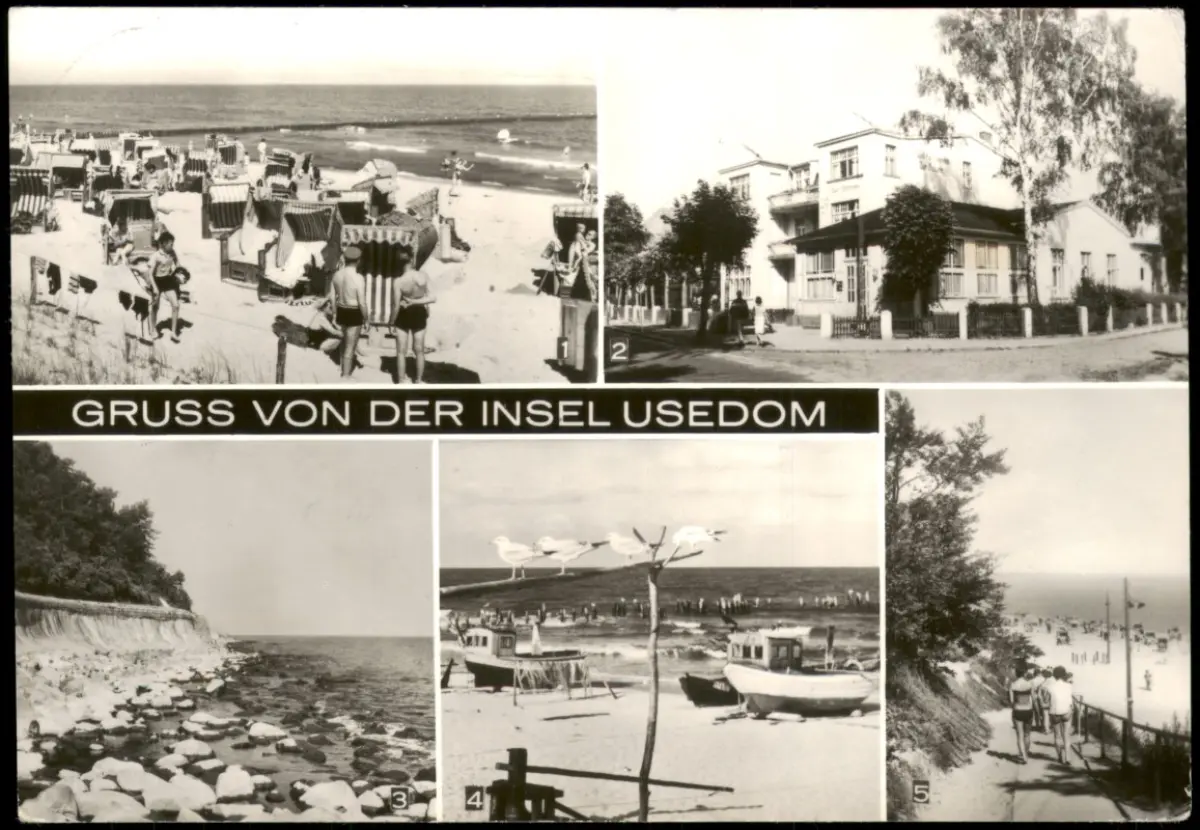Usedom belebter Strand, Erholungsheim, Streckelberg, Kölpinsee 1985