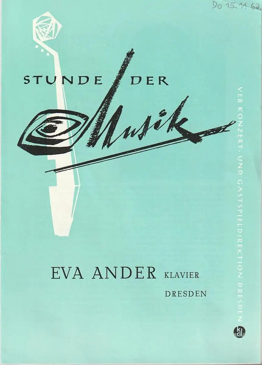 VEB Konzert- und Gastspieldirektion Dresden: Programmheft STUNDE DER MUSIK EVA ANDER KLAVIER 15. November 1962.