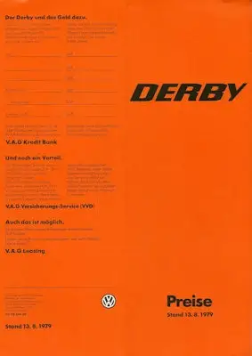 VW Derby Preisliste 8.1979