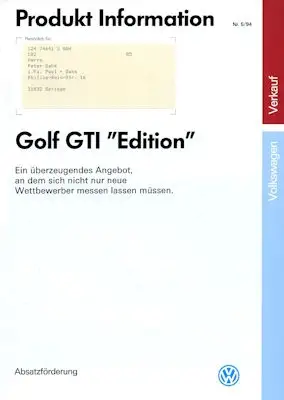 VW Golf 3 GTI Edition Prospekt 3.1994