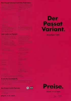 VW Passat B 2 Variant Preisliste 9.1984