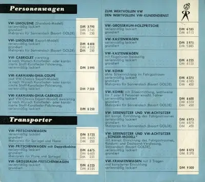 VW Preisliste 8.1960