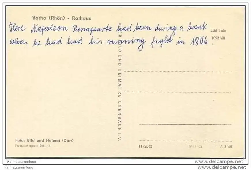 Vacha - Rathaus - Foto-AK 1960 - VEB Bild und Heimat Reichenbach - Rückseite beschrieben (E8939)