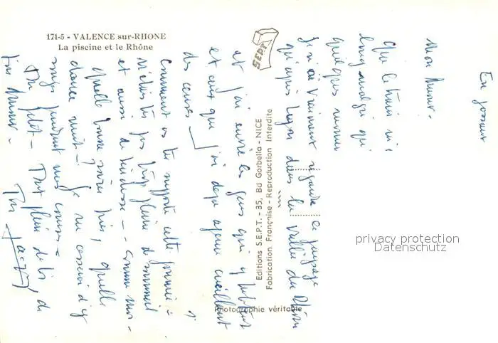 Valence_Drome La piscine et le Rhône Valence_Drome postalisch nicht gelaufen 1921-1965 Erhaltung siehe scans [FriedD77] Frierer