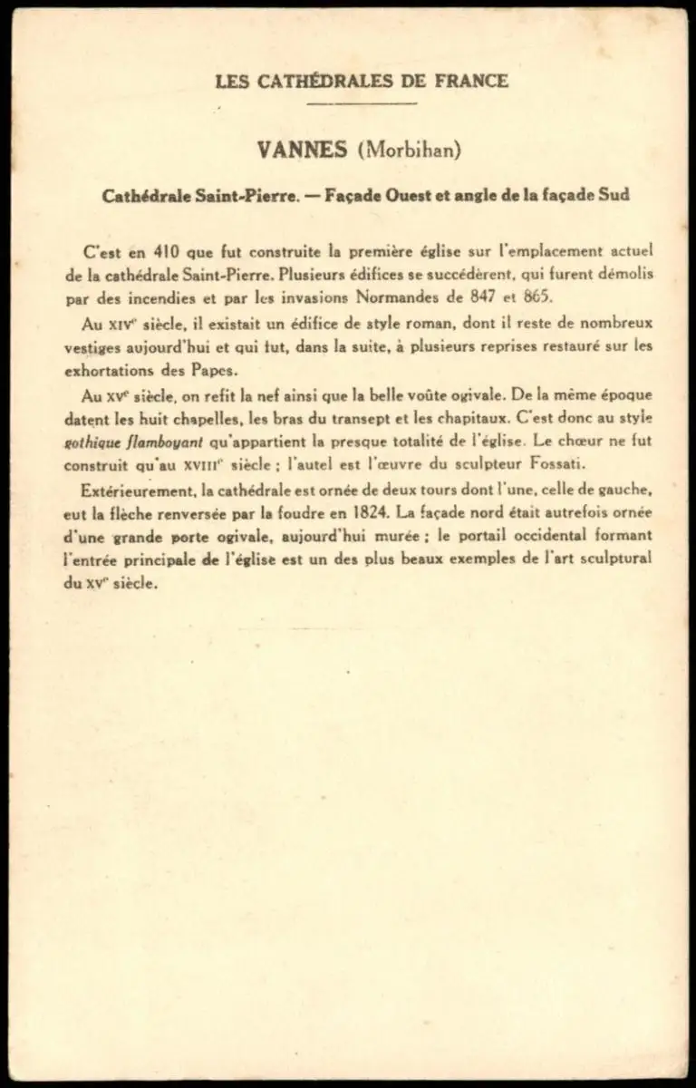 Vannes CATHEDRALE ST-PIERRE (Façade Ouest et angle de la façade Sud) 1920