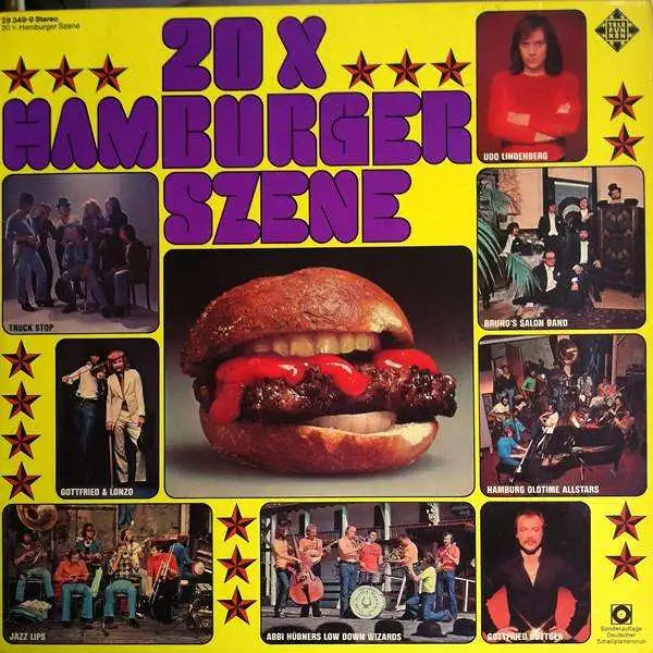 LP Album Various Artists - 20 x Hamburger Szene, scratch / kratzer S2.T7+8, otherwise NM, Zustand Platte VG Hülle VG+; Made in Germany 1976 Telefunken 28 349-9, 16.21 241, Tracks Gottfried & Lonzo - Hamburg '75, Udo Lindenberg & Das Panik Orchester - Candy Jane, Hamburg Oldtime Allstars - Way Down Yonder In New Orleans, Hot Owls - Squeeze Me, Truck Stop - Hello Josephine, Udo Lindenberg & Das Panik Orchester - Rudi Ratlos, Hamburg Oldtime Allstars - Hesitating Blues, Abbi Hübner And His Low Down Wizards - Everybody Loves My Baby, Lonzo & Friends - Barcarole 75, Udo Lindenberg & Das Panik Orchester - O-Rhesus-Negativ, Udo Lindenberg & Das Panik Orchester - Hoch Im Norden, Lonzo & Friends - Gottfried's Rag, Jazz Lips - Savoy Blues, Bruno's Salonband - That Da-Da-Strain, Abbi Hübner And His Low Down Wizards - Basin Street Blues, Udo Lindenberg & Das Panik Orchester - Alles Klar Auf Der Andrea Doria, Lonzo & Friends - Western Stoptime, Gottfried Böttger - Heut' Gehn Wir Auf'n Schwof, Bruno's Salonband - Manhattan, Udo Lindenberg & Das Panik Orchester - Der Malocher
