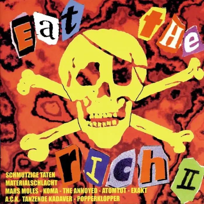 CD Album Various - Eat The Rich II, Zustand CD VG+ Hülle M-; Made in Germany Nix Gut Records NG 05, Tracks The Annoyed - Verbrechen Lohnt Sich, Atomtot - Steh Auf, Koma - Anschiß, Mars Moles - Großstadt, Materialschlacht - Fishmac, Tanzende Kadaver - Letzte Nacht, A.C.K. - Falsche Freunde, Schmutzige Taten - Ushalala, Popperklopper - Ohne Rücksicht, Mars Moles - Dein Pferd, Exakt - Verkehrte Welt, Tanzende Kadaver - Wenn Der Wolf Erwacht, Koma - Bildzeitung, Materialschlacht - Warzenharry II, A.C.K. - Data, Mars Moles - Autokatze, Atomtot - Abschaum, Schmutzige Taten - Könnt Ihr Euch Erinneren, Koma - Müller, Tanzende Kadaver - 20000 Volt, Exakt - Staatsbesuch, Materialschlacht - Wir Leben Im FSKZ, Mars Moles - Gangster Jesus, The Annoyed - Stolze Deutsche, Popperklopper - Wie Oft?