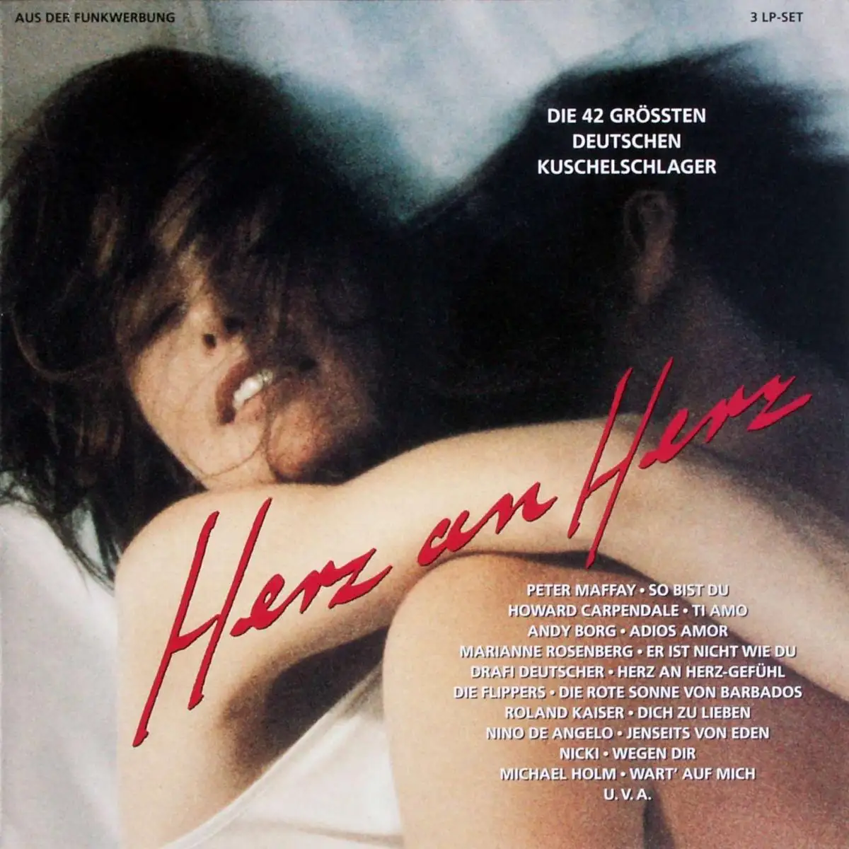 3x LP Album Various Artists - Herz An Herz Die 42 Grössten Deutschen Kuschelschlager, Zustand Platte M- Hülle M-; Made in Germany 1990 Teldec 9031-71150-1, Tracks Howard Carpendale - Hello Again 3:39, The Cats - One Way Wind 3:47, Gitte - Weisse Rosen 2:14, Peter Maffay - Tiefer 4:10, Udo Lindenberg - Ich Lieb' Dich Überhaupt Nicht Mehr 3:53, Demis Roussos - Goodbye, My Love, Goodbye 3:58, Bernd Spier - Das War Mein Schönster Tanz 2:31, Die Flippers - Die Rote Sonne Von Barbados 3:25, Roy Black - Ganz In Weiss 2:58, Katja Ebstein - Abschied Ist Ein Bisschen Wie Sterben 4:06, Andy Borg - Die Berühmten Drei Worte 3:48, Heidi Brühl - Wir Wollen Niemals Auseinandergehn 2:59, Bernd Clüver - Der Kleine Prinz 3:45, Roland Kaiser - Dich Zu Lieben 3:41, Drafi Deutscher - Herz An Herz Gefühl Sensuality 4:12, Roland W. - Monja 3:04, Roy Black - Frag' Nur Dein Herz 2:47, Paola - Blue Bayou 3:55, Mina - Heisser Sand 2:55, Peter Alexander - Bist Du Einsam Heut' Nacht 3:15, Ivo Robic - Mit Siebzehn Fängt Das Leben Erst An 2:55, Peter Maffay - So Bist Du 5:07, Michael Holm - Wart' Auf Mich Du, Wenn Ich Dich Verlier' - Tornero 4:08, Vicky Leandros - Die Bouzouki Klang Durch Die Sommernacht 3:26, Bino - Mama Leone 3:50, Milva - Lass Mich Frei La Cumparsita 3:18, Christian Anders - Geh' Nicht Vorbei 5:59, Howard Carpendale - Ti Amo 4:09, Karel Gott - Nie Mehr Bolero No More Bolero's 3:41, Marion - Er Ist Wieder Da 2:43, Bernd Spier - Das Kannst Du Mir Nicht Verbieten 2:45, Vicky Leandros - Ich Hab' Die Liebe Geseh'n Un Fiume Amore/Kaymos 4:27, Andy Borg - Adios Amor 3:28, Markus - Kleine Taschenlampe Brenn' 3:36, Nicki - Wegen Dir 3:51, Nino De Angelo - Jenseits Von Eden 3:50, G. G. Anderson - Am Weissen Strand Von San Angelo 4:16, Marianne Rosenberg - Er Ist Nicht Wie Du 3:28, Ulli Martin - Monika 3:52, Ronny - Oh My Darling Caroline 2:47, Tommy Steiner - Die Fischer Von San Juan 4:07, Die Flippers - Weine Nicht Klein